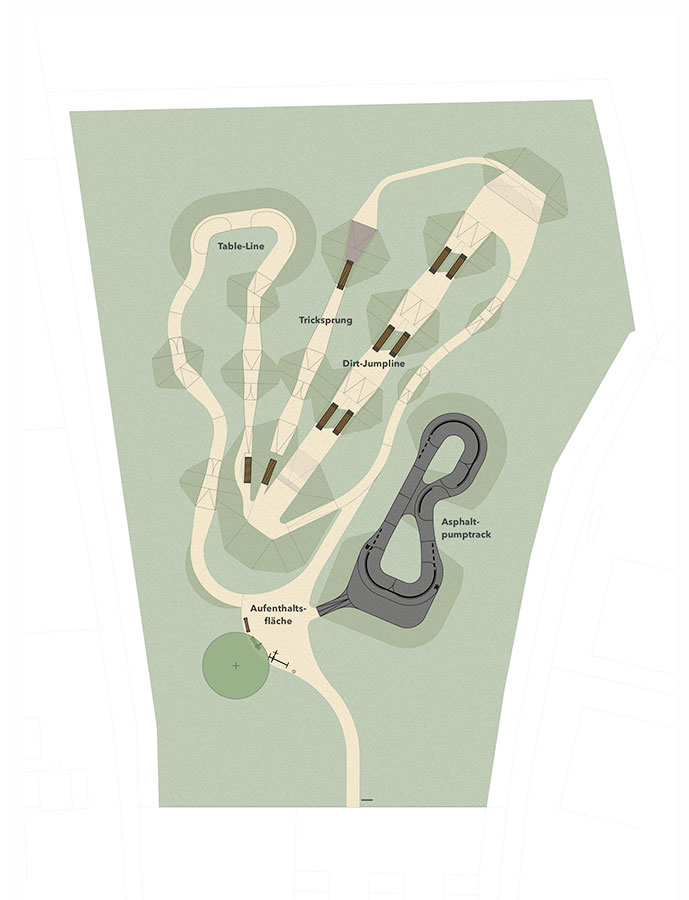 Auf rund 5000 m2 entsteht ein Bikepark von über-regionaler Bedeutung. Ein asphaltierter Pumptrack, ein Dirtpark mit Jumpline, Tableline, Tricksprüngen und vielem mehr: Schrobenhausen bekommt endlich seinen großen Dirtpark. Rund 200 m2 sind für den asphaltierten Pumptrack vorgesehen, der besonders für Kinder und Einsteiger gut geeignet ist. 770 m2 umfasst der Dirt-Bereich, in dem sich die Fortgeschrittenen bis Profis austoben können.