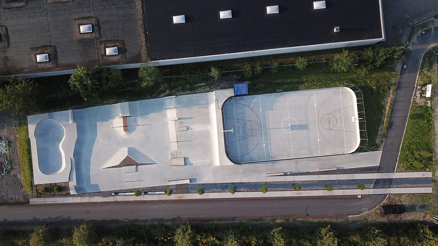 Die Sportfläche befindet sich auf dem Gelände eines ehemaligen Güterbahnhofs, der Genius Loci wurde in Form von Cortenstahl Elementen in die Planung integriert. Die Multifläche kann außerhalb der Hockeynutzung den Basketballern zur Verfügung stehen. Dies bietet die Möglichkeit zwei eher fernen Sportarten einander anzunähern und voneinander profitieren zu lassen. Designed vom Büro Landskate, technisch umgesetzt durch Wolfgang Stattmann.